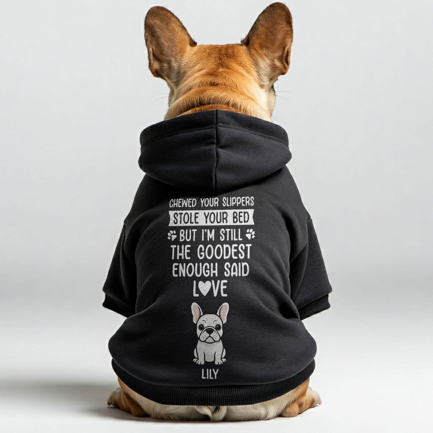 Chewed your slippers - Personalized French Bulldog hoodies with funny quotes, custom name, and custom clipart matching your Frenchie's color – Stylish, Cozy, and Premium 100% Cotton