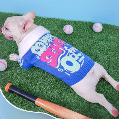 Keep your Frenchie warm and stylish with the Sporty French Bulldog Winter Sweater. Designed in a playful varsity style, this cozy Frenchie sweater is perfect for chilly weather. Available in two vibrant colors—blue and pink—it features a plush, soft fabric that provides warmth and comfort for your small dog. This Frenchie sweater displays bold "COMING SOON" letters in fun shades of pink, green, and white, adding a unique touch of personality.