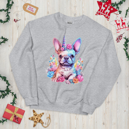 Display your admiration for these charming creatures with this stylish sweatshirt. More than a fashionable garment, it represents a thoughtful gift for fans of Frenchies and unicorns alike. Wearing this sweatshirt is not just about setting a fashion trend - it's about expressing your affinity for these delightful beings.