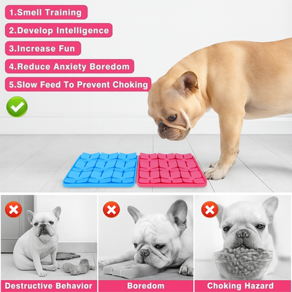 Make mealtime fun and safe for your Frenchie with our Chewzzle Frenchie Slow Feeder Mat! Featuring a smart leaf design, hidden treat pockets, and strong suction cups for stability, it's perfect for wet food, dry kibble, or treats.