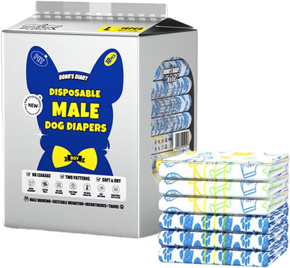 Keep your furry friend comfortable and your home accident-free with our Frenchie Male Dog Diapers 10-Pack. These high-quality male dog wraps are super absorbent, leak-proof, and soft, providing the perfect solution for dogs with urinary incontinence, potty training needs, excessive marking, or post-surgery recovery.