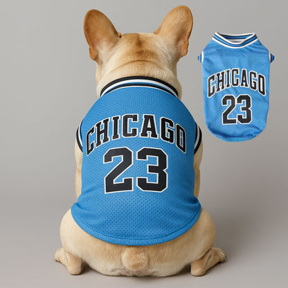 The Frenchie Mesh Dog Basketball Jersey is the perfect breathable dog shirt for hot weather. Designed with active dogs in mind, this lightweight mesh jersey keeps your furry friend cool, dry, and fashionable during all your summer adventures.