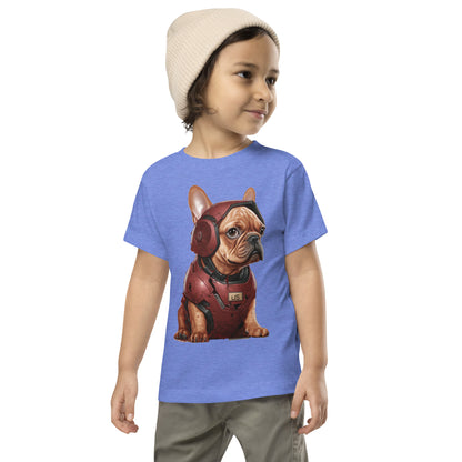 Futuristic Design: Our Kid's Frenchie T-Shirt - Tech-Savvy Canine Apparel features a futuristic design that blends technology and fashion seamlessly. The shirt showcases a cool and trendy graphic of a French Bulldog adorned with futuristic elements.