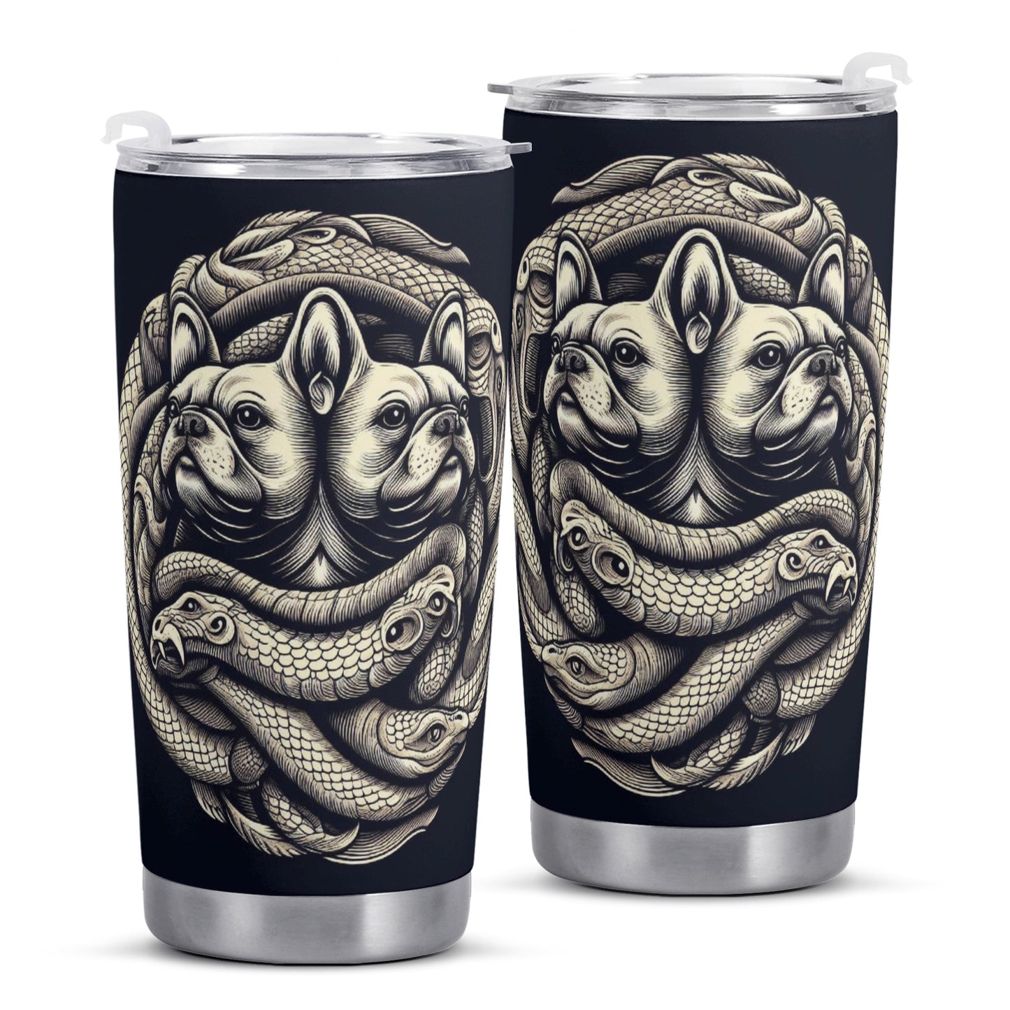 6. French Bulldog Theme: Adorned with charming French Bulldog designs, this tumbler is a must-have for anyone who adores this lovable breed. It's a subtle yet delightful way to showcase your affection for Frenchies.