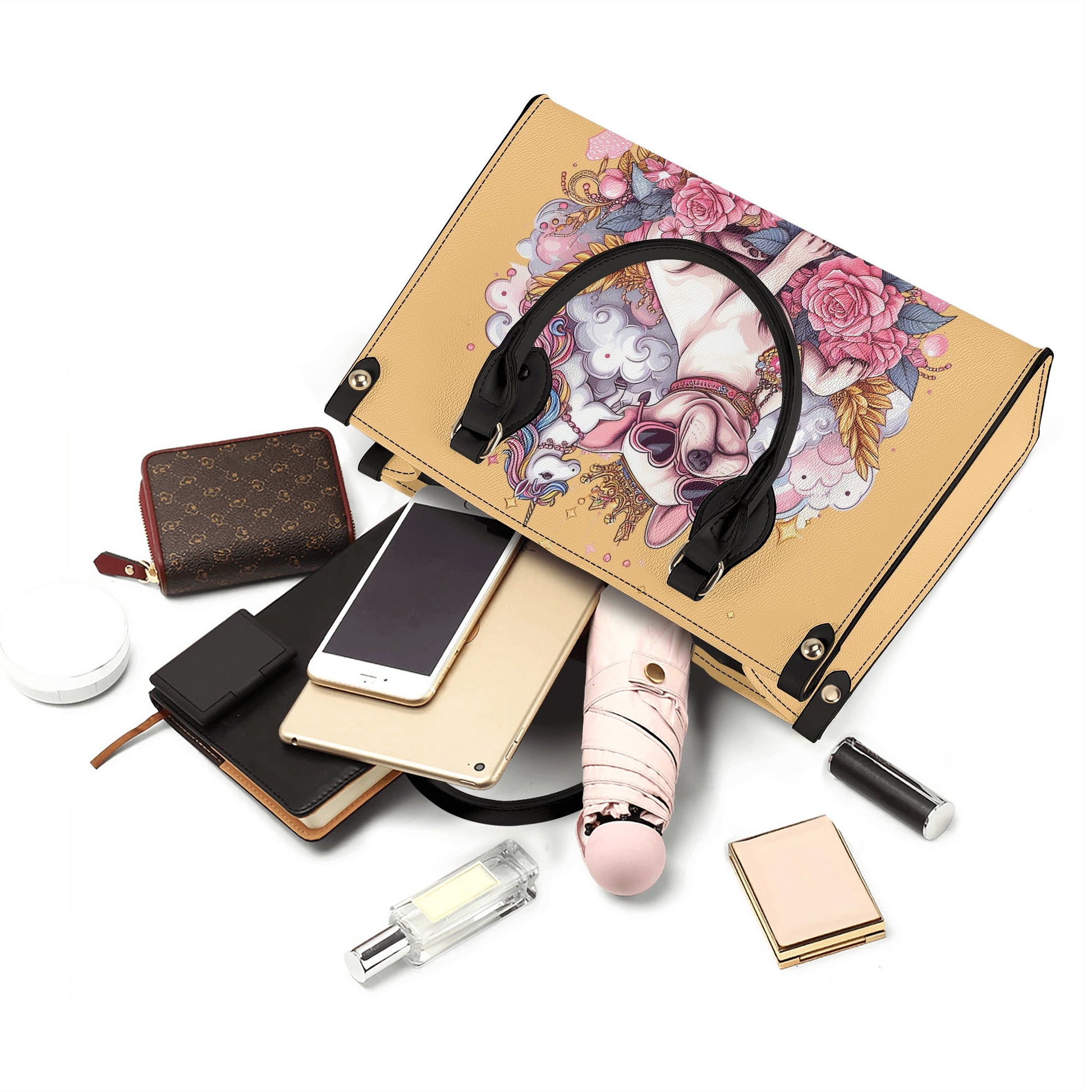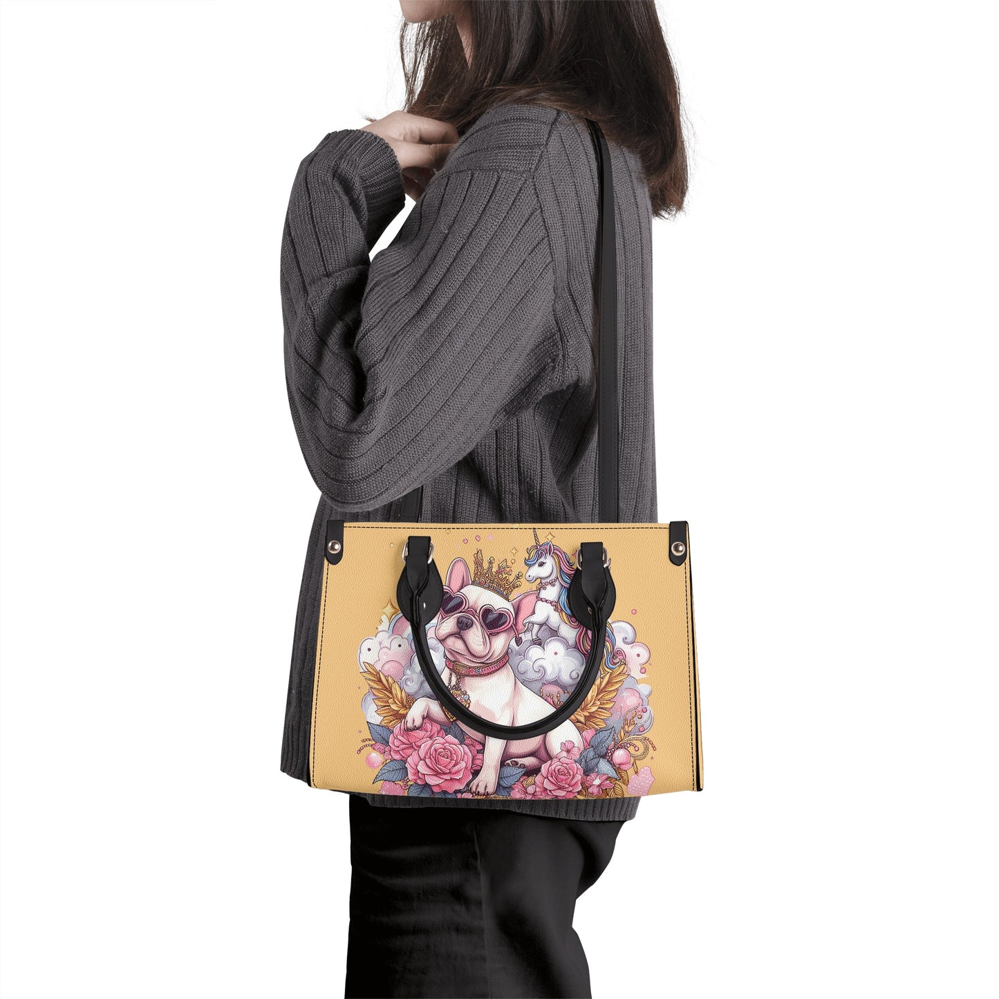 Introducing our exquisite handbag designed specifically for ladies who adore French Bulldogs and fashion. This tote bag combines practicality with elegance, making it a must-have accessory for the modern woman.