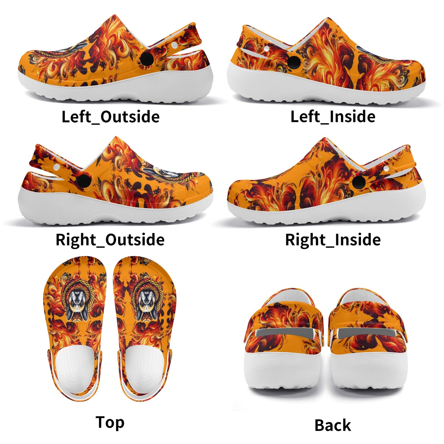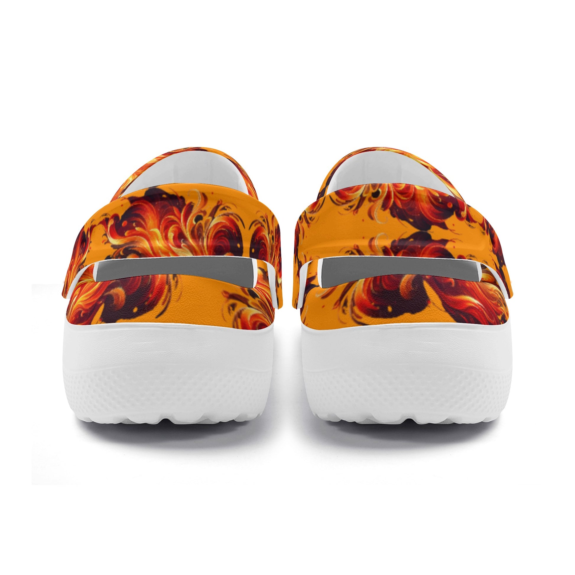 Whether you're dashing about on errands or enjoying a leisurely stroll, your feet will relish the support and flair these clogs provide. With a range of sizes from US 5.5 to 12 (EU 36-43) and a closed-toe construction featuring a handy heel strap, they're the perfect fit for anyone. The 100% EVA outsole and upper offer a round-toe style that is versatile for all seasons—fall, spring, summer, or winter.