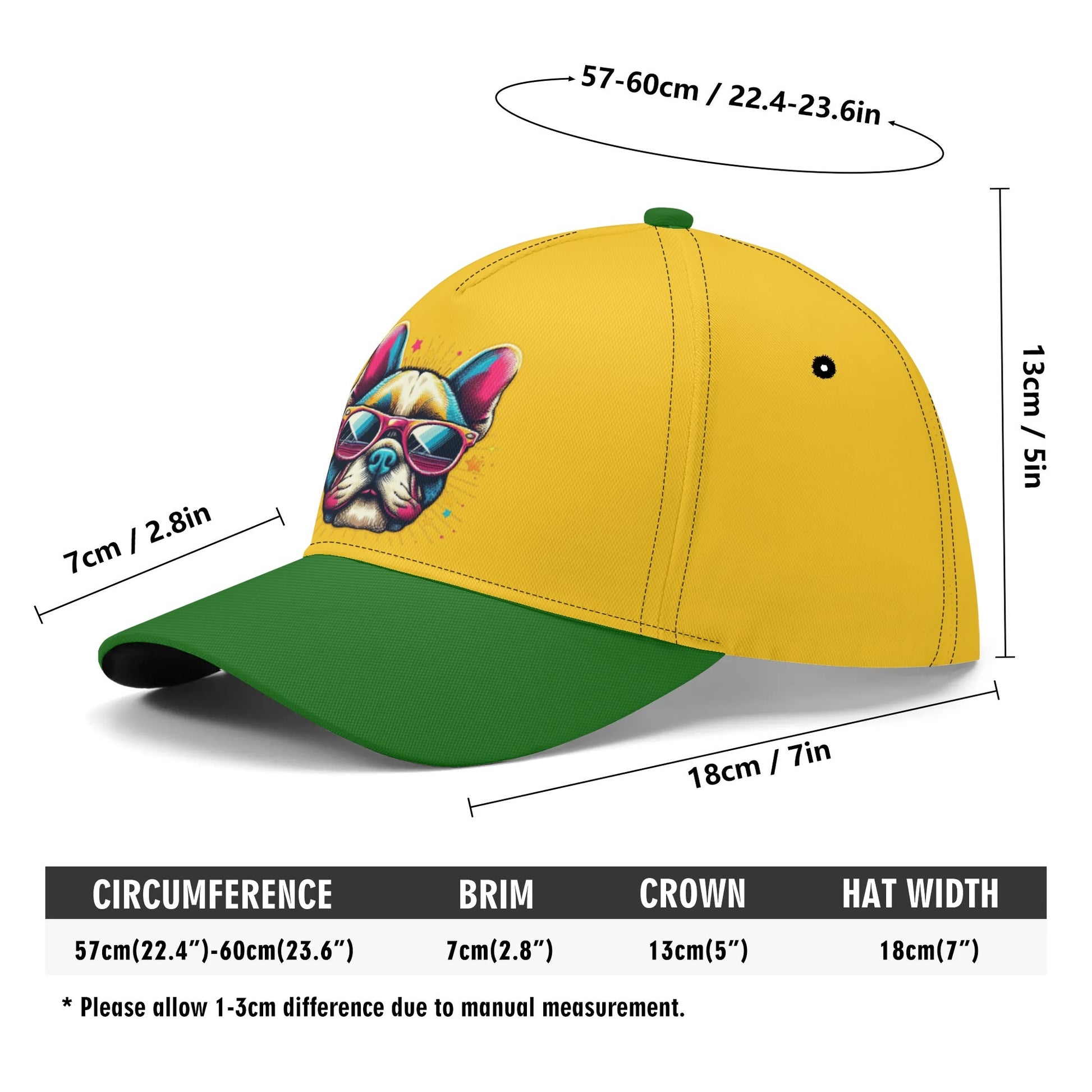 Show off your love for French Bulldogs with this stylish and functional baseball cap. Whether you're out on an adventure or just enjoying a sunny day, this cap is the perfect accessory for any French Bulldog enthusiast!