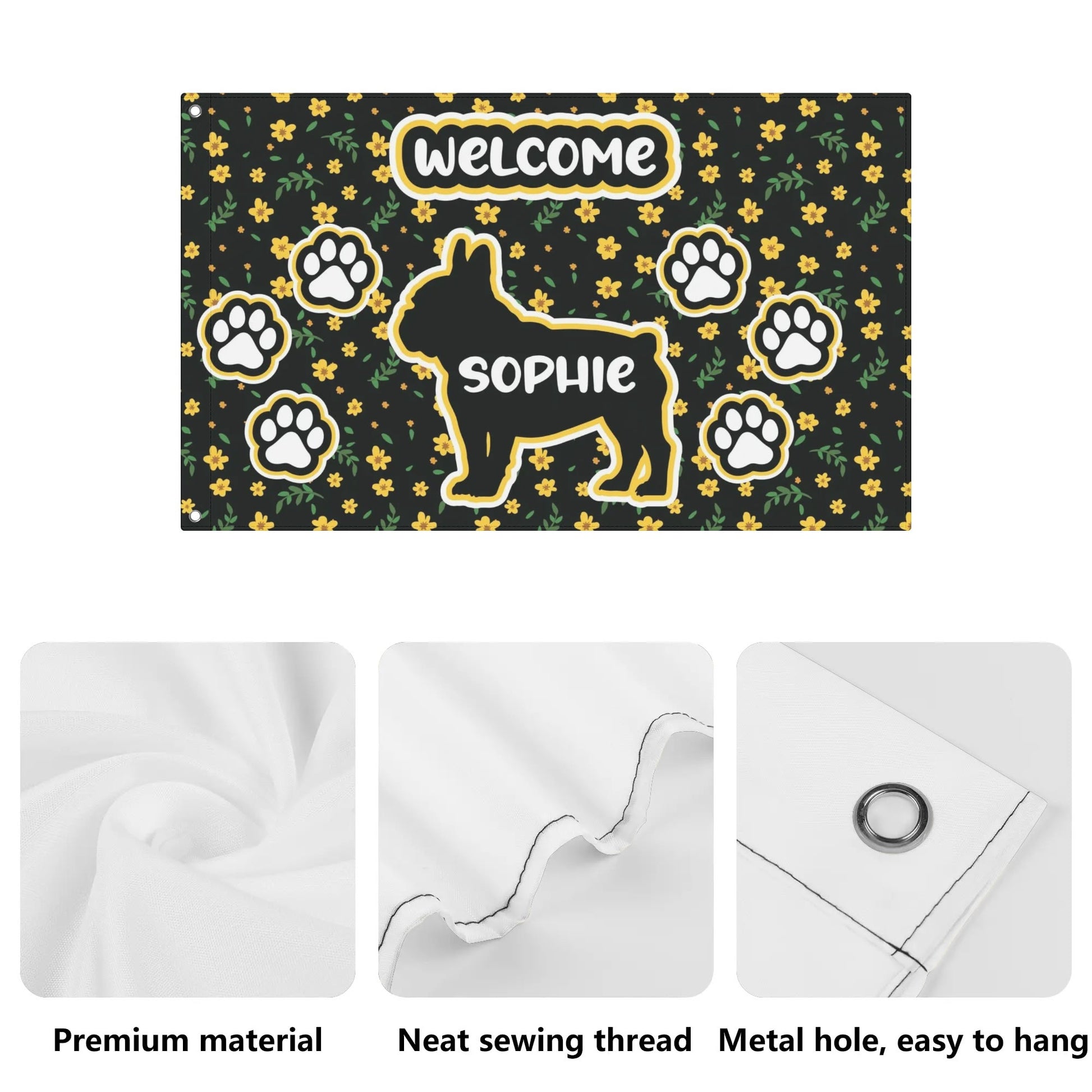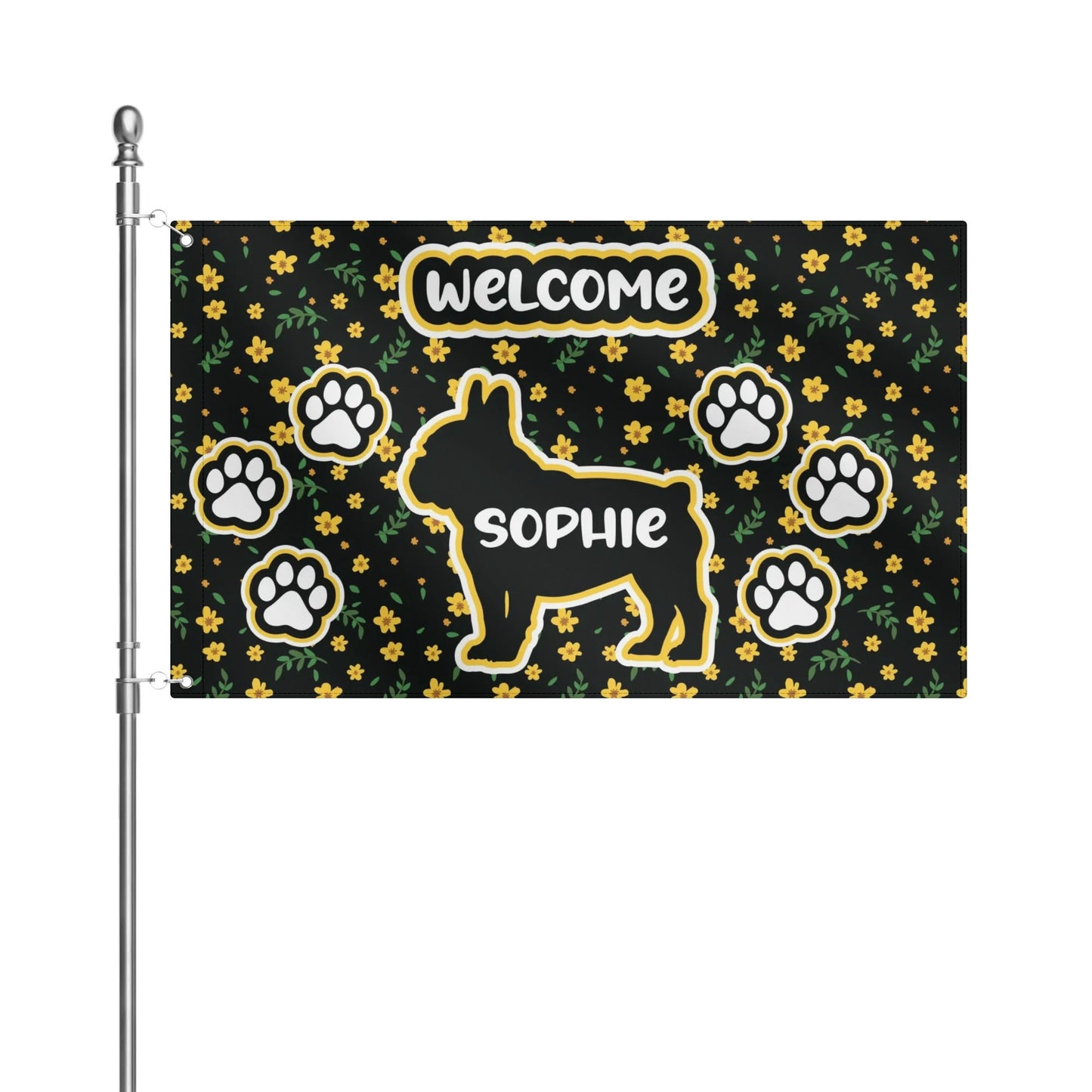 Garden Flag Banner Personalized with Your French Bulldog's Name 🐶💕 Embrace your love for French Bulldogs with our Garden Flag Banner, personalized with a design that showcases your passion and your Frenchie's name! Made from durable 100% polyester fabric, this 3x5 Ft flag is designed to withstand the elements and add charm to any space. 🌟 🛒 How to Order: Select Quantity: Choose the number of personalized flags you'd like to purchase 📦 Add to Cart: