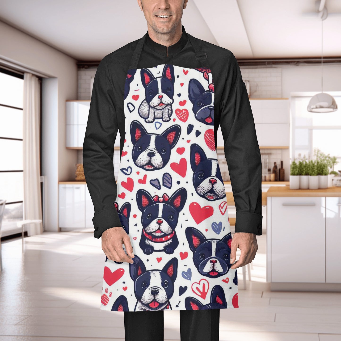 Show off your love for French Bulldogs while keeping your clothes spotless with this charming and functional apron. Whether you're cooking up a storm or diving into your latest art project, this apron is designed to combine utility with a dash of dog-lover delight.