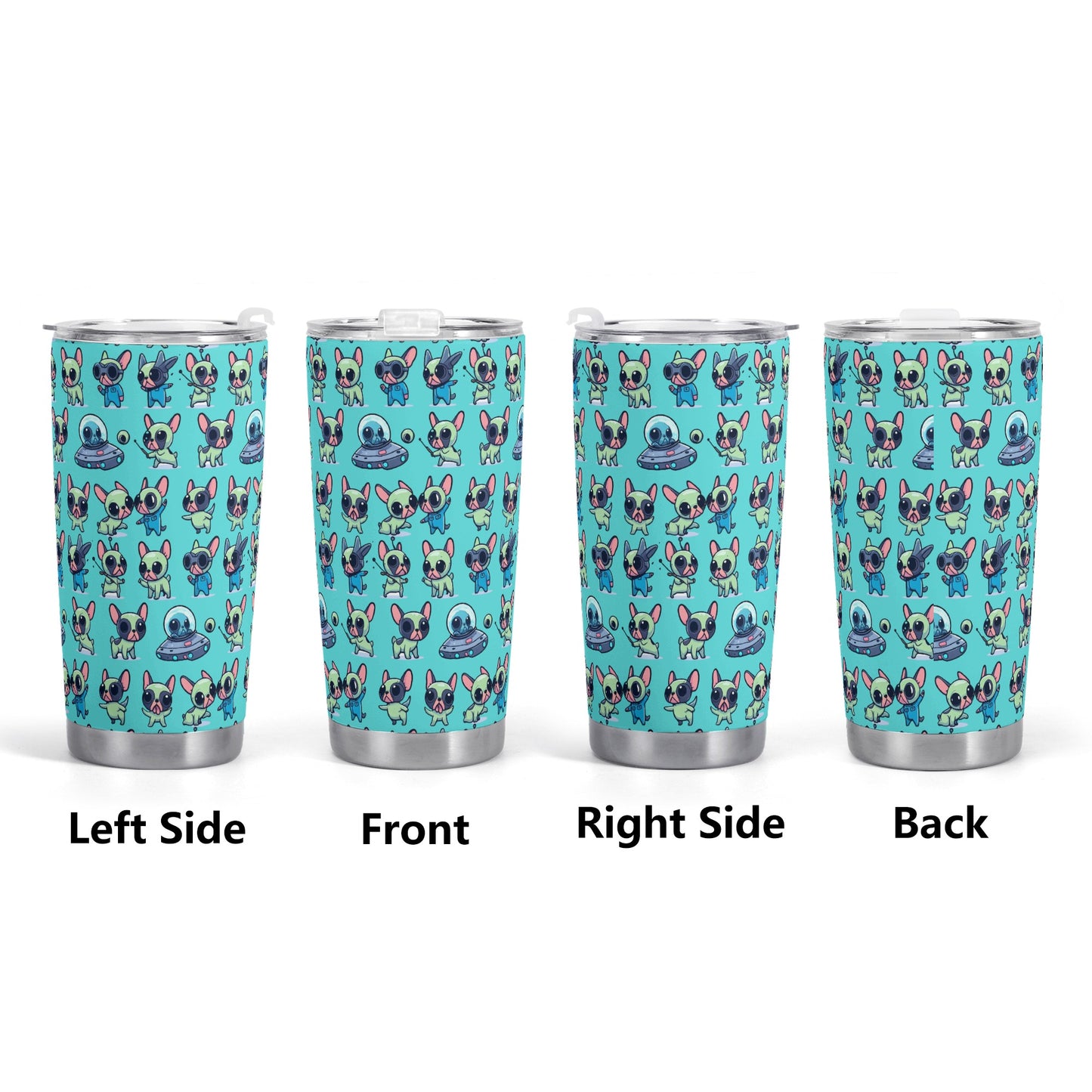 6. French Bulldog Theme: Adorned with charming French Bulldog designs, this tumbler is a must-have for anyone who adores this lovable breed. It's a subtle yet delightful way to showcase your affection for Frenchies.
