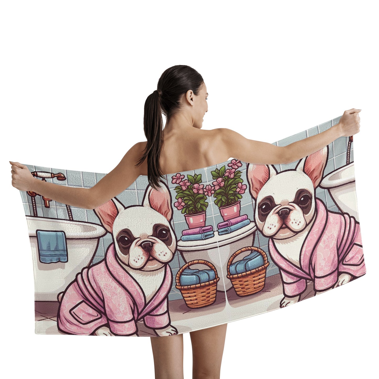 Ideal For:French Bulldog lovers who appreciate a blend of style, comfort, and practicality in their daily lives. This bath towel is not just a bathroom essential; it's a statement of affection for one of the most charming dog breeds. Whether it's for personal use or as a thoughtful gift, it's sure to bring joy and convenience.