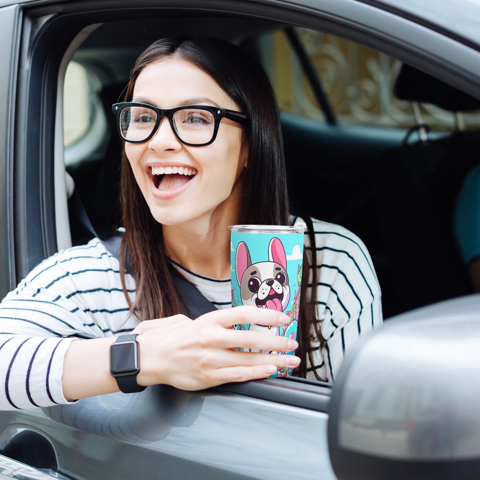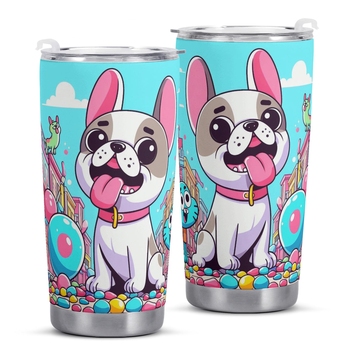 Charming French Bulldog Artwork: Accented with delightful Frenchie-themed graphics, this tumbler lets you showcase your love for the breed wherever you take it.