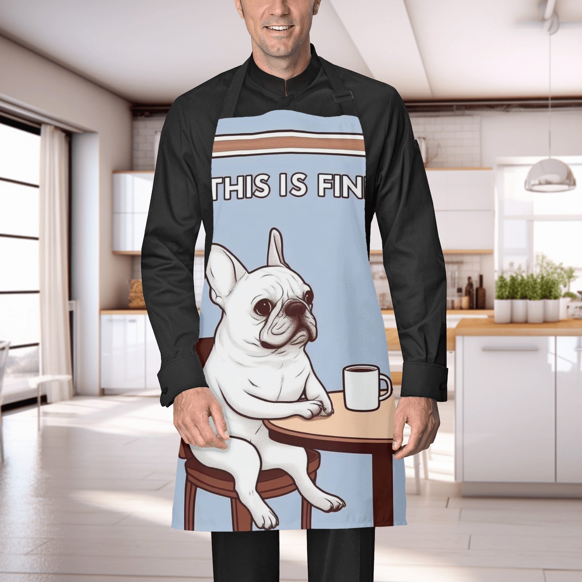 Adorable Frenchie Artwork: Decorated with cute and playful French Bulldog graphics, this apron adds a lighthearted, lovable flair to your routine. It’s as delightful as it is practical!